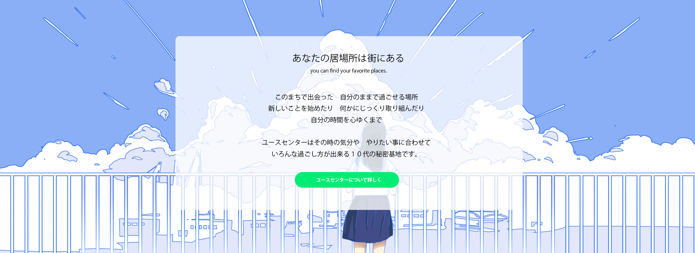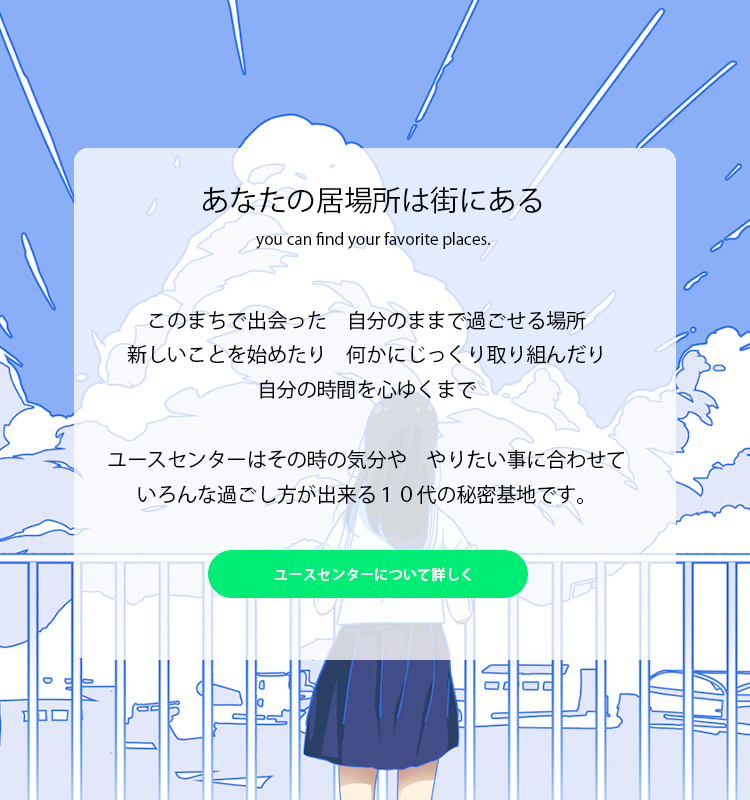 まずは下の「ユースセンターを探してみよう」を見て、行ってみたい場所を見つける。